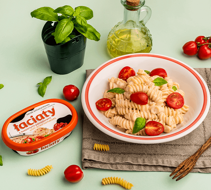 - Pół opakowania Serka śmietankowego Łaciaty z suszonymi pomidorami