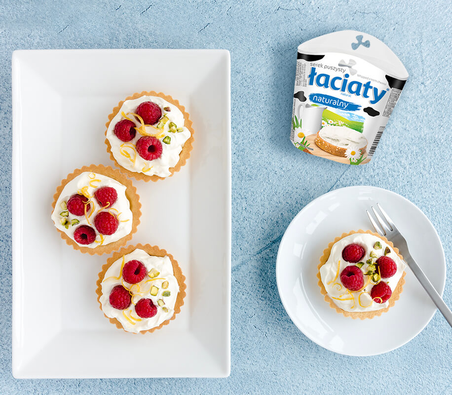 Tarty mogą być miniaturowe, ale ich smak jest wielki. Podawaj z serkiem Łaciatym, bo to jest sekret smaku, który pokochają wszyscy.