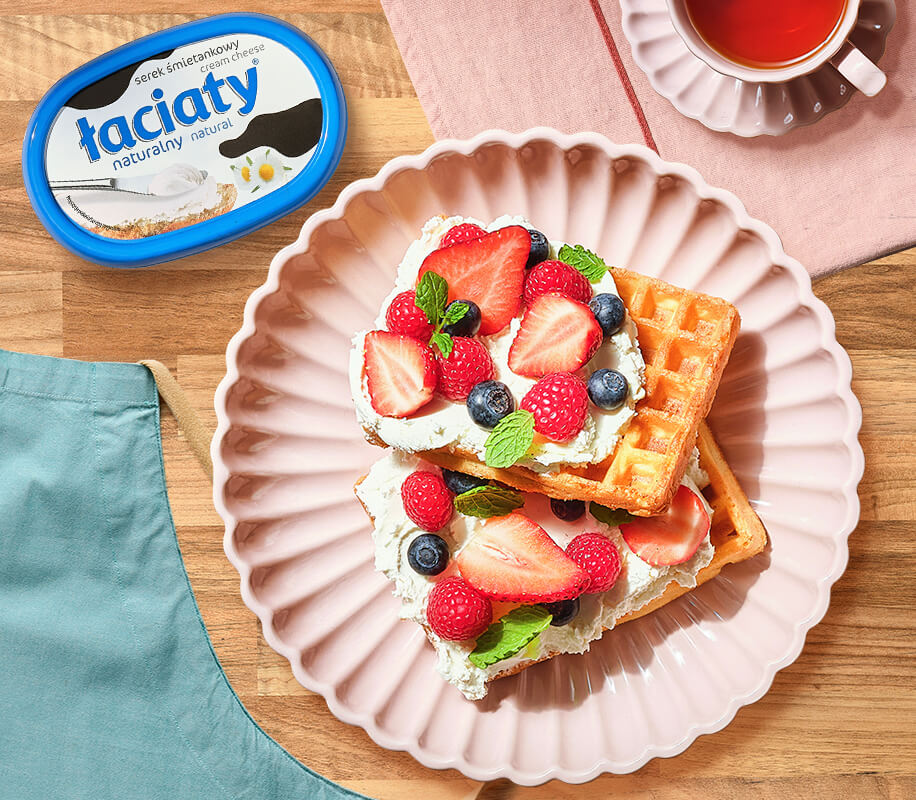 Niech podniesie rękę ten, kto jadł gofra z bitą śmietaną? Teraz deser może stać się kolacją lub śniadaniem, gdy zastąpisz śmietanę pysznym serkiem Łaciatym.